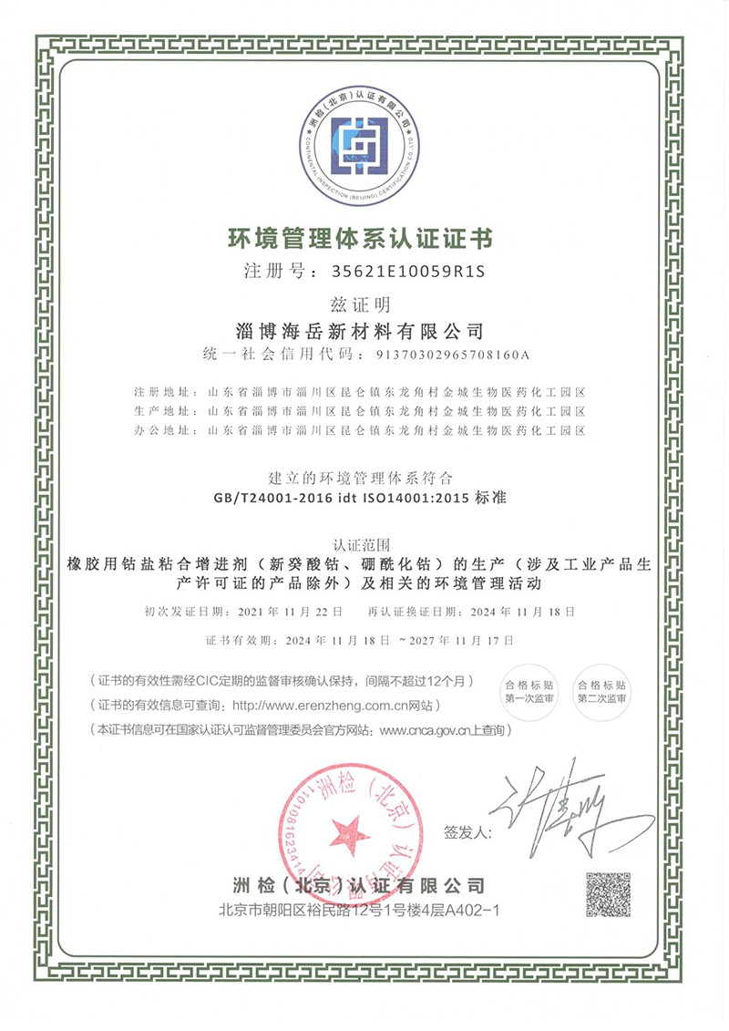 環(huán)境管理體系認證證書-中文