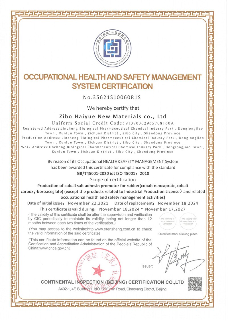 職業(yè)健康安全管理體系認證證書-英文
